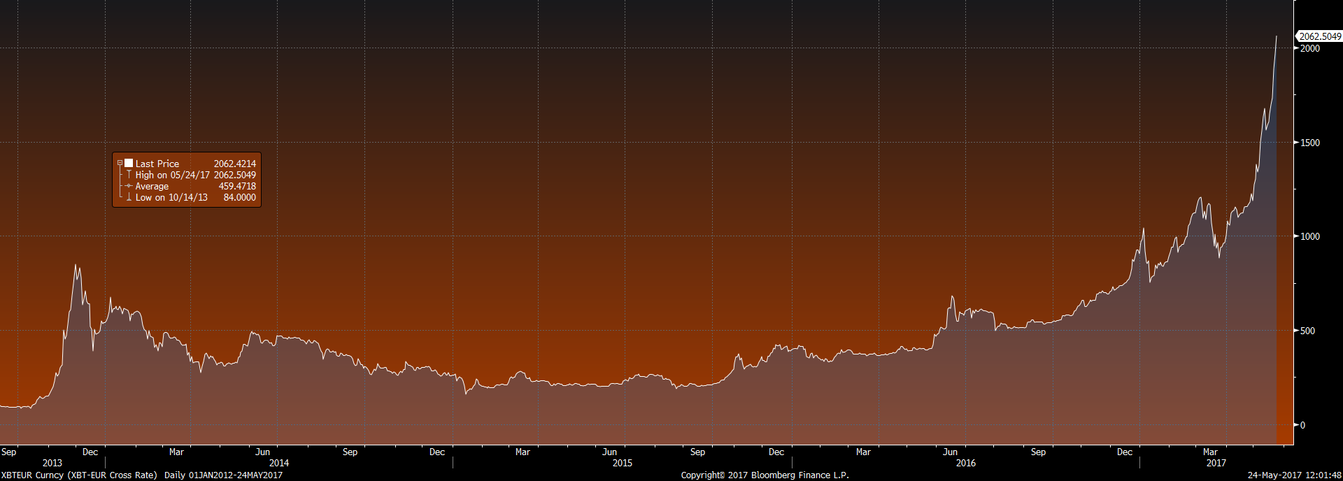 ევრო-ბითქოინის კურსი (2013-2017 წლები)