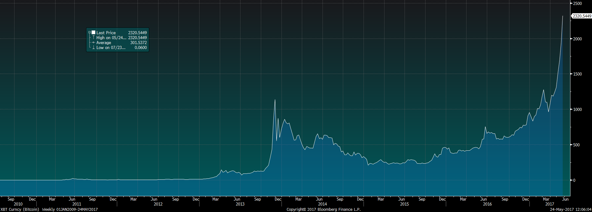 აშშ დოლარი-ბითქოინის კურსი (2010-2017 წლები)