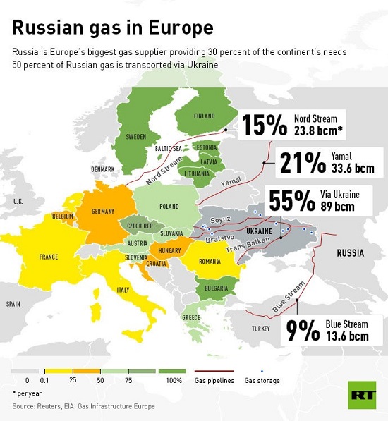 ევროკავშირმა 2015 წელს სულ მოიხმარა 402 მილიარდი კბმ ბუნებრივი აირი. ევროკავშირის არაწევრი კიდევ 10 ქვეყანა მოიხმარს დამატებით 131 მილიარდ კბმ-ს.