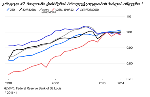 ღარიბ ქვეყნებში პროდუქტიულობა შეიძლება სწრაფად გაიზარდოს უცხოური ტექნოლოგიებისა და ბიზნესის წარმოების გზების კოპირებით. მაგრამ ინდუსტრიული ერებისთვის, ზრდის თითოეული პუნქტი მოაქვს მხოლოდ დაუღალავ შრომას ცვლილებებისთვის ტექნოლოგიებში, ბიზნესის მართვის მეთოდებსა და სამთავრობო პოლიტიკაში.