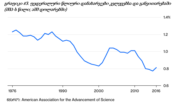 თუმცა,ბოლო წლებში აშშ-ს მშპ-ში კვლევებზე გაცემული დაფინანსების წილი შემცირდა: