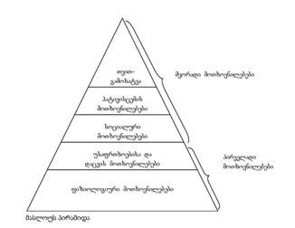1. ბიოლოგიურიური მოთხოვნილებები-საკვების, სასმელის, ჯანგბადის, დასვენების,სექსის,დაძაბულობის მოხსნის…
