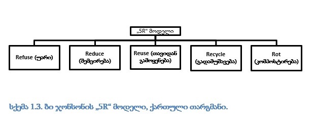 • Recycle (გადაამუშავე): თუ ნივთებს თავიდან ვეღარ გამოიყენებ დაფიქრდი, შესაძლებელია თუ არა მისი გადამუშავება?