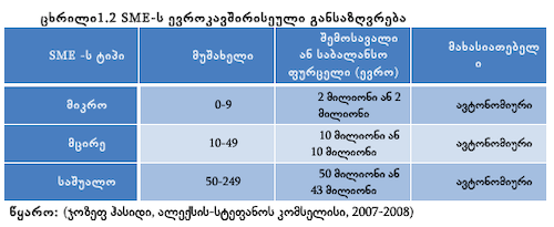 ხოლო, კომიტეტის კვლევითი ნაშრომის განმარტებით, მცირე და საშუალო საწარმო: