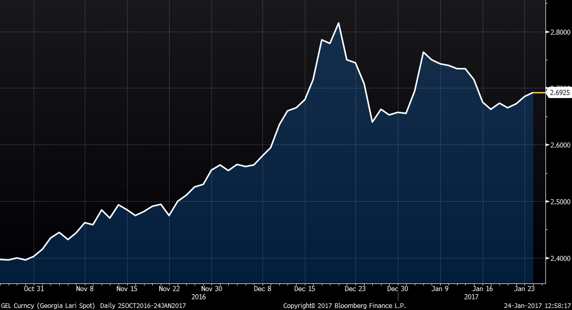 გთავაზობით ლარის კურსის ბოლო სამი თვის გრაფიკულ ანალიზს, Bloomberg-ის ტერმინალის მიხედვით