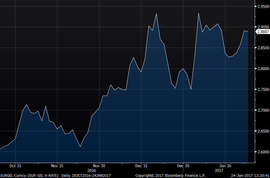 ყველაზე მაღალი ფასი დაფიქსირდა 5 იანვარს: 2.9328 ლარი = ევრო