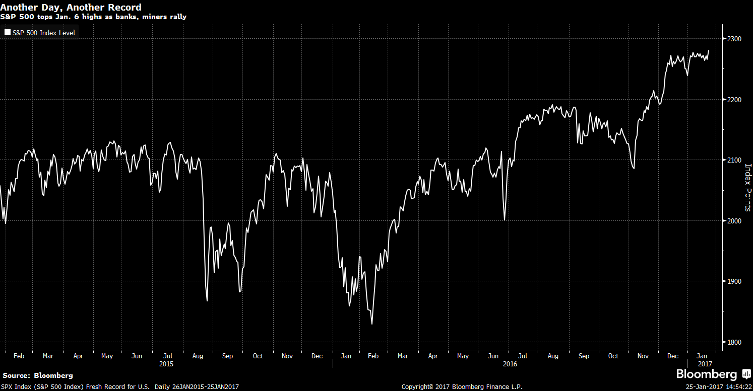 ინვესტორები უფრო ოპტიმისტი ხდებიან, ამას განაპირობებს მსხვილი კომპანიების 2017 წლის შემოსავლების ზრდის პროგნოზებიც. კარგი სიახლეებია იაპონიიდან, სადაც ექსპორტის შემცირების 14 თვიანი ტრენდი დასრულდა, რისი ძირითადი მიზეზიც ჩინეთის მხრიდან ტვირთებზე მოთხოვნის ზრდა იყო. ბაზრის მონაწილეებისთვის კარგი სიგნალი იყო ასევე ტრამპის სამომავლო გეგმები, განსაკუთრებით ავტომწარმოებლებისთვის გადასახადების შემცირებასთან დაკავშირებით, რამაც აშშ-ში ახალი ქარხნებისა და, შესაბამისად, ახალი სამუშაო ადგილების შექმნას უნდა შეუწყოს ხელი.