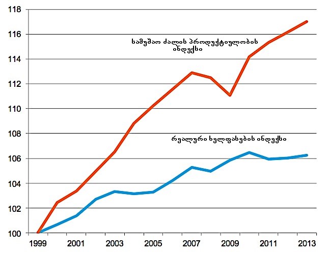გრაფიკი #2. დასაქმებული ძალის პროდუქტიულობა და ხელფასების ზრდის ტემპები განვითარებულ ქვეყნებში