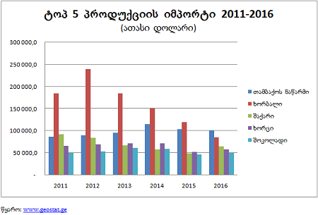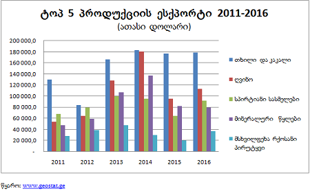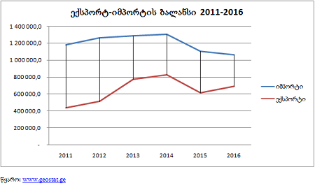 მართალია პირველი 5 საექსპორტო პროდუქტის ღირებულებამ 2016 წელს შეადგინა 500$ მილიონი, იმპორტისა კი 362$, მაგრამ საერთო ჯამში მაინც იმპორტი სჭარბობს, თუმცა შეინიშნება სხვაობის შემცირება.