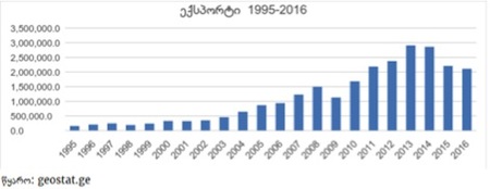 საქსტატი ექსპორტს 1995 წლიდან აღრიცხავს. 2017 წლის იანვრამდე სულ 25$ მილიარდზე მეტი პროდუქციის ექსპორტი მოგვიხდენია. 155 მილიონით დაიწყო და მაქსიმალურ მაჩვენებელს 2.9 მილიარდს 2013 წელს მიაღწია. საერთო დინამიკა მზარდია გამონაკლისებით. 1998 წელს აზიის კრიზისისა და უფრო მეტად რუსეთის დეფოლტის ფონზე ექსპორტი პირველად შემცირდა 53 მილიონით, მაგრამ მაშინ 53 მილიონი 22%-ს შეადგენდა. დოლარმა 2 ლარს პირველად სწორედ მაშინ გადააჭარბა. მცირედი 2%-იანი კლება აღინიშნა 2001 წელსაც. ბევრად უფრო სერიოზული პრობლემის წინაშე აღმოვჩნდით 2009 წელს 362$ მილიონიანი კლება, ეს კი თითქმის ¼-ს უდრიდა. ყველაფერი ერთმანეთს მიება ომი, ეკონომიკური კრიზისი, საკნების ქალაქი… ამ სამივე შემთხვევას 1 რამ აერთიანებთ კლება იყო ერთწლიანი და მომდევნო წლის ექსპორტი აჭარბებდა კლებამდელს, რასაც ვერ ვიტყვით 2014 წლიდან დაწყებულ პროცესებზე. ამ წელს კლებამ სულ რაღაც 2% შეადგინა, მაგრამ ნოემბერში -35%, დეკემბერში-20%. მომდევნო წელს კი თანხობრივად ყველაზე მასშტაბური 657 მილიონიანი კლების მომსწრე გავხდით 23%, კლება გაგრძელდა 2016 წელსაც. წელს პირველ 6 თვეში 30%-იანი ზრდა გვაქვს, იმისთვის, რომ 4 წლის წინანდელ მაჩვენებელს გადავუსწროთ საჭიროა წლიური 38%-იანი ზრდა. დარჩენილ 6 თვეში კი 45%-იანი ზრდა რაც უკვე ნაკლებად დამაჯერებელია. ყველაზე დიდ ექსპორტს და 3 მილიარდიანი ზღვრის გადალახვას მხოლოდ გაისად უნდა ველოდოთ.