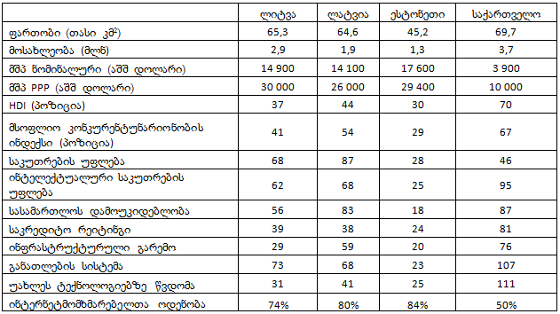 ლიტვამ და ლატვიამაც დაახლოებით იგივე გზა განვლეს რაც ესტონეთმა. პრობლემები მათაც ჰქონდათ და აქვთ კიდეც. 2008 წლის კრიზისის შემდეგ ეკონომიკა 10%-ზე მეტით შემცირდა. ესტონეთში და ლატვიაში ეთნიკური რუსების წილი 25%-ს აჭარბებს, რაც მიუხედავად ნატოს წევრობისა ქმნის სეპარატიზმის სერიოზულ საფრთხეს. ქვეყანაში ცხოვრების უფლება ყველას აქვს, მაგრამ არა მოქალაქეობა, რადგან მათი ნაწილი ვერ ან არ აბარებს გამოცდას ესტონურ ენაში. შესაბამისად მათ არც არჩევნებში მონაწილეობის უფლება აქვთ. თუ ამ ქვეყნებმა შეძლეს, ჩვენც შევძლებთ. მოგების გადასახადის ესტონური მოდელი კარგია, თუ მის რეფორმებს IT ინდუსტრიაშიც მივბაძავთ, კიდევ უფრო უკეთესი იქნება.