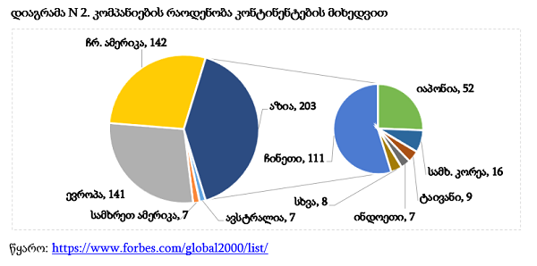 გრძელვადიან პერიოდში „Global 500“ – ის რეიტინგში აღინიშნებოდა კომპანიების გეოგრაფიული განაწილების საგრძნობი ცვლილებები. 2001 წლის მონაცემებით რეიტინგში ჩრდილოეთ ამერიკული წარმოშობის კომპანიების რაოდენობა შეადგენდა – 215 ერთეულს, აზიური წარმოშობის კომპანიების 116-ს, ხოლო ევროპის ტერიტორიაზე დაფუძნებული კომპანიების წილი იყო – 158**. 2018 წლის მონაცემებით ჩრდილოეთ ამერიკული კომპანიების რაოდენობა რეიტინგში 2001 წელთან შედარებით შემცირდა 34%-ით და შეადგინა 142 ერთეული. ევროპული კომპანიები მეტ-ნაკლები სტაბილურობით ხასიათდებოდნენ თუმცა, ამ შემთხვევაშიც, აღინიშნა რაოდენობის უმნიშვნელო 11%-იანი კლება 141 – მდე. 2001-2018 წლებში ამერიკული და ევროპული კომპანიებისგან განსხვავებით აზიური წარმოშობის კომპანიების რაოდენობა მკვეთრად გაიზარდა და შეადგინა 203 ერთეული, რაც 75%-ით მეტია 2001 წლის მონაცემებთან შედარებით (იხ. დიაგრამა N2). აზიური კომპანიების რაოდენობის ზრდის ესოდენ მაღალი მაჩვენებელი განპირობებულია, ჩინური, ინდური და სამხრეთ კორეული წარმოშობის კომპანიების რაოდენობის სწრაფი ზრდით და აღნიშნულ ქვეყნებში საწარმოო სიმძლავრის გეოგრაფიული გადანაცვლებით, რისი წინაპირობაც სტაბილური ბიზნეს-გარემო და იაფი მუშახელია.