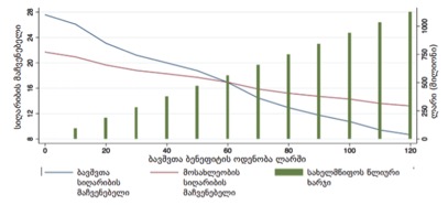 გრაფიკი 1. სიღარიბის მაჩვენებლები ბავშვთა საყოველთაო ფულადი დახმარების შემთხვევაში (თვეში 120 ლარამდე ერთ ბავშვზე)